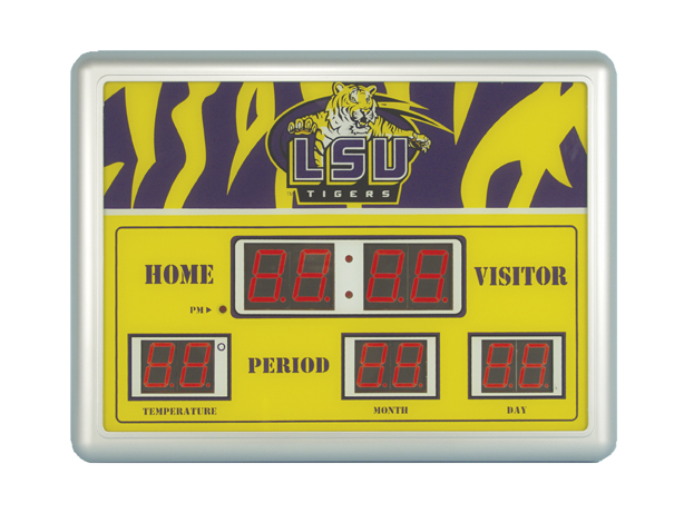 This weather resistant, LED Scoreboard Clock shows the time, date, and temperature. Would look great in your den, bedroom, gameroom, or bar. Plugs into the wall and measures 19"x14"x2".