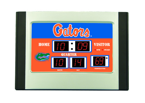 This is a cool looking mini-sized alarm scoreboard clock. Shows the time, date, and temperature and features eight different alarm settings. Measures 6.25"x9.5"x3.5" . Normally ships in 3-5 business days.