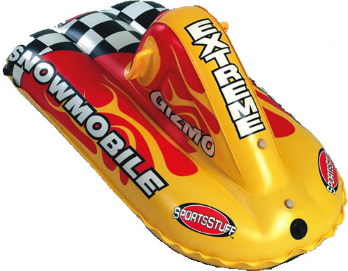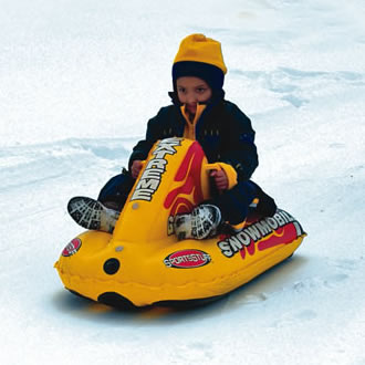 Let your kid glide down the slopes on this cool inflatable. Bold graphics and a heavy gauge rugged reinforced PVC bladder allow this snowmobile to handle any snow terrain. Strong, easy-grip handles and a directional bottom allow the rider to keep this “snowmobile” straight and true in any snow conditions. All components have a special additive to protect against cracking to -25°C.