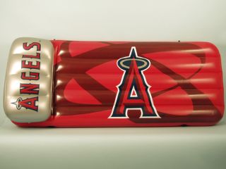 Anaheim Angels Inflatable Swimming Pool Float This 66"x27"x5" Pool Float and Air Mattress is perfect for the beach, pool, or lake. It comes with built in grommets to tie up the lounger. Sturdy I-Beam construction features .25mm polyvinyl and built in angled air pillow with separate air valve.