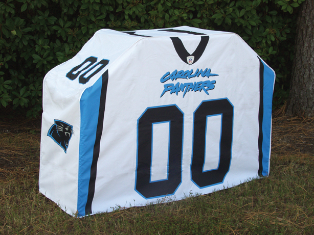 Officially licensed, this replica jersey grill cover is suitable for year round outdoor use. Made of thick and durable polyvinyl, these covers are weatherproof and mildew resistant. Approximate size 60"x41"x19.5"
